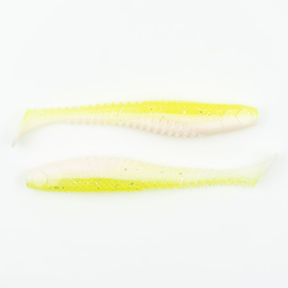 The Kick Tail Shad is a shad shaped swimbait built to move water and get noticed. Its super soft body and wide tail produce strong kick on the retrieve, giving the bait a lively swimming action at both slow and fast speeds.
