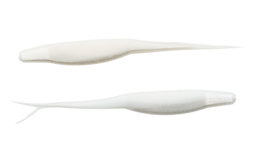 Fished weightless, it falls and swims with a wounded baitfish look. On a weighted hook or jighead, it tracks clean while the tail flutters and moves water, keeping the bait active at any speed. The soft plastic allows the tail to work freely, making the bait effective on both slow and fast retrieves.