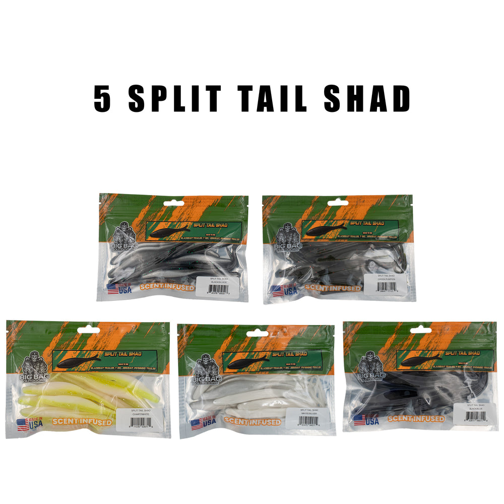 x5- Split Tail Shad (x1 of Each Color)